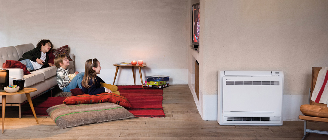 Тази година специално за отоплителния сезон Daikin представи новото подово тяло, работещо с технологията Bluevolution. Тъй като то създава топъл поток близо до пода и равномерно разпределя топлината, можете да забравите усещането за студени крака. С този климатик стаята ви бързо ще постигне енергийно ефективни комфортни температури. Устройството е с много малък размер и може лесно да бъде инсталирано под прозореца. Тихата работа няма да наруши почивката Ви.