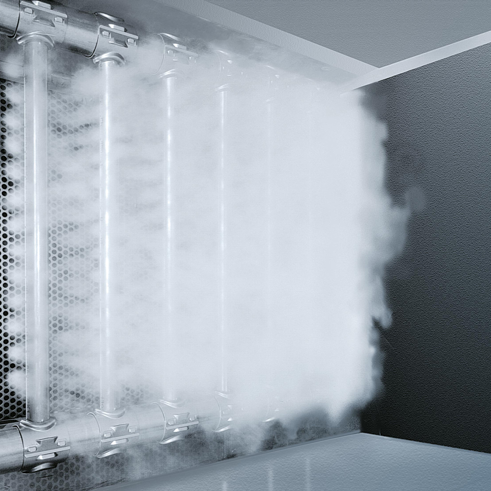 С Optisorp, немската фирма Condair предлага многостепенна система за овлажняване на въздуха с пара, която, за разлика от традиционните системи, разполага с няколко разпределителни тръби, които са оборудвани с дюзи за парата.