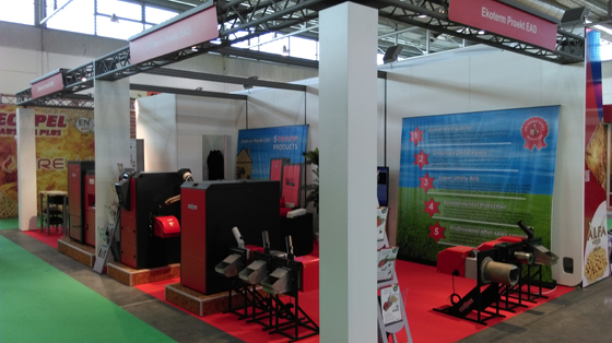 Като реномиран производител на изделия за оползотворяване на горива от твърда дървесна биомаса, фирма Екотерм Проект ЕАД зае своето място сред изложителите на Progetto Fuoco. Иновативните продукти с марка GreenEcoTherm привлякоха внимание със своето качество, технологичност, функционалност и надеждност. Посетителите имаха възможността да се запознаят отблизо с водогрейните пелетни котли на Екотерм Проект серия Pelletherm V.4 Long Time и Pelletherm V.2 M03, както и пелетните горелки с пълно механично самопочистване GP xx sc, тубусната пелетна ротационна горелка GP xx trc и тубусната горелка GP xx tsc, която освен пелети може да оползотворява и прина.