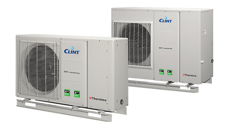 Агрегатите Thermica, продавани под марката Clint на GIH, се предлагат в мощности от 6 до 10 kW с производство на топла вода до 55°C. Оборудвани с инверторни компресори с променлива скорост, EC вентилатори и интегриран воден модул с високоефективен EC циркулатор, термопомпите Thermica гарантират отопление при околна температура до -20°C и висока ефективност при частични натоварвания. Новата гама достига енергиен клас A +++ при 35°C и A ++ при 55°C.