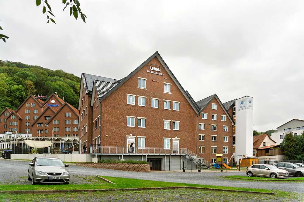 В рамките на цялостна основна реконструкция бившата медицинска клиника в Porta Westfalica е преобразувана в модерен многофункционален обект с 41 жилищни единици, детска градина и амбулаторна медицинска служба. Имотът „Am Jakobsberg“ разполага с полезна площ от около 3800 кв. м и се използва от представители на различни поколения. Изискванията към комфорта, безопасността и енергийната ефективност са високи, особено с оглед на хетерогенния състав на ползвателите, включващ възрастни хора и малки деца.