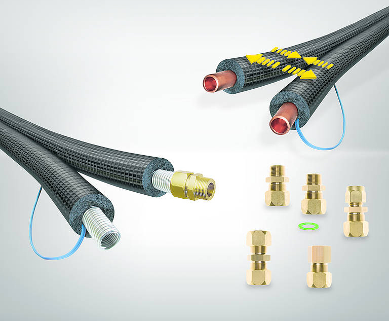 При топлопроводимост на изолационния материал от 0.042 W/mК, тръби с диаметър DN 16 могат да бъдат изолирани с 29 милиметрова облицовка. Така за подходящото изолиране на входните и изходни тръби се изисква пространство от около 125 cm², което е твърде много за тесните инсталационни шахти.