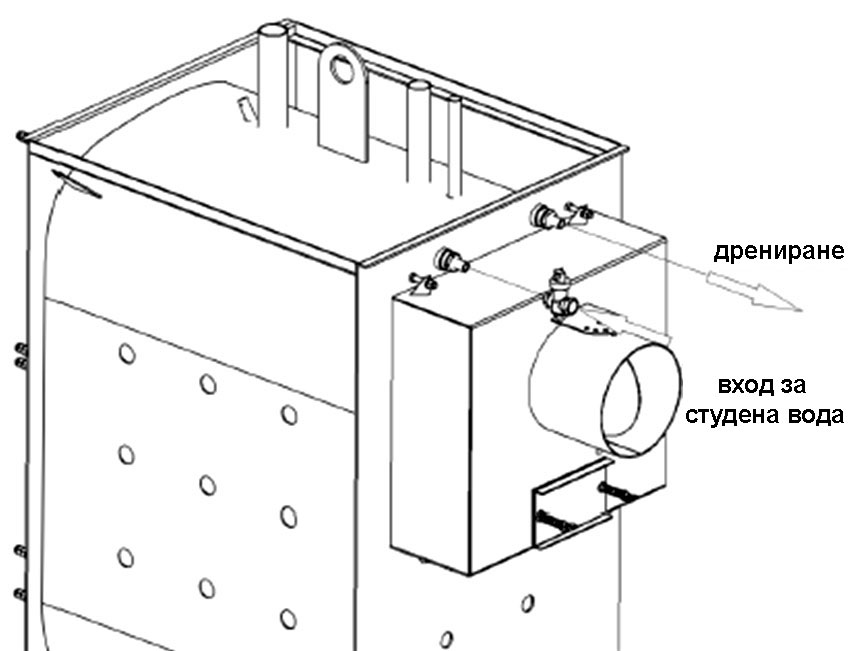От обратната страна на серпентината, трябва да има свързване и дрениране на водата.