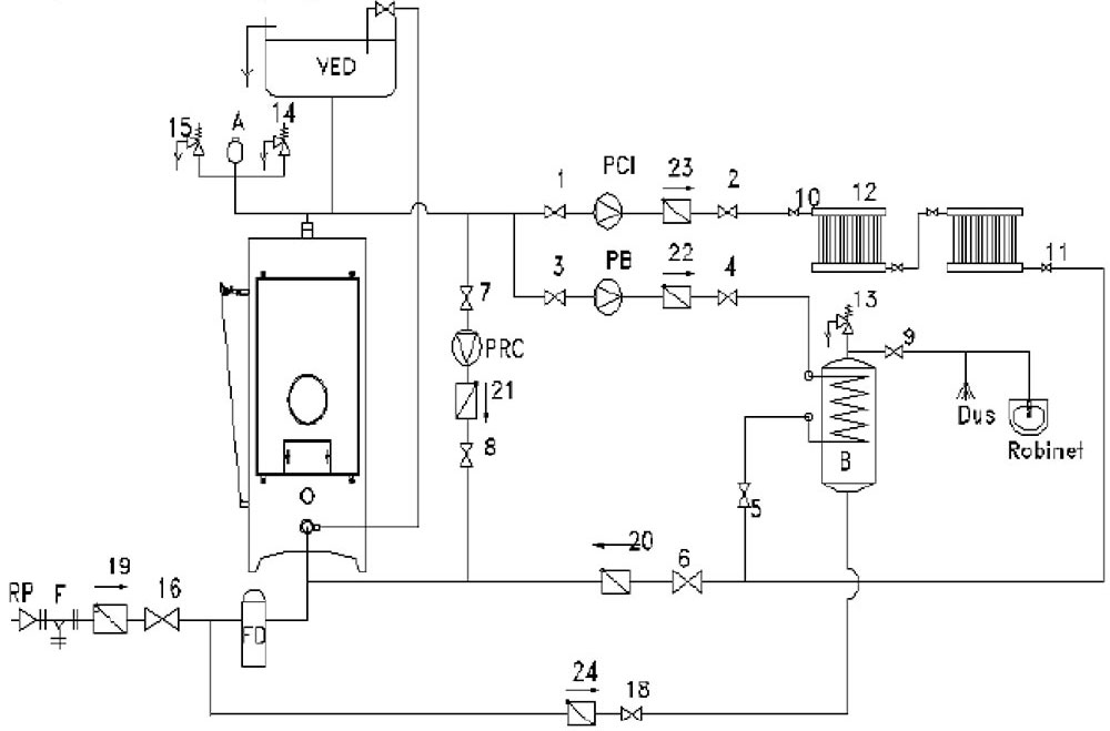 13-15. Предпазни вентили; PRC Рециркулационна помпа;
