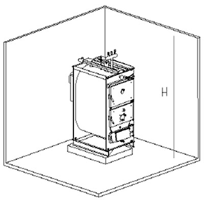 Котелът трябва да бъде инсталиран в отделно и специално помещение. Това помещение трябва да бъде избрано така, че да осигурява лесен достъп за транспортиране на гориво, за подаване на въздух и за отвеждане на отработени газове. Вратите на котелното помещение трябва да са метални, да се отварят навън, и да са с широчина минимум 0,9 м.