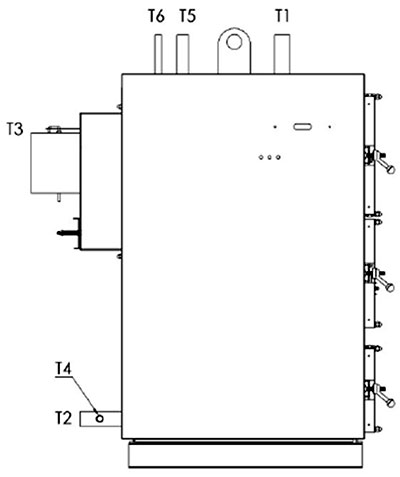 Котелът е предназначен за работа с максимална температура от 90°С и максимално налягане от 3 бара – за котли до 500 kW, и 4 бара за по-големите котли.