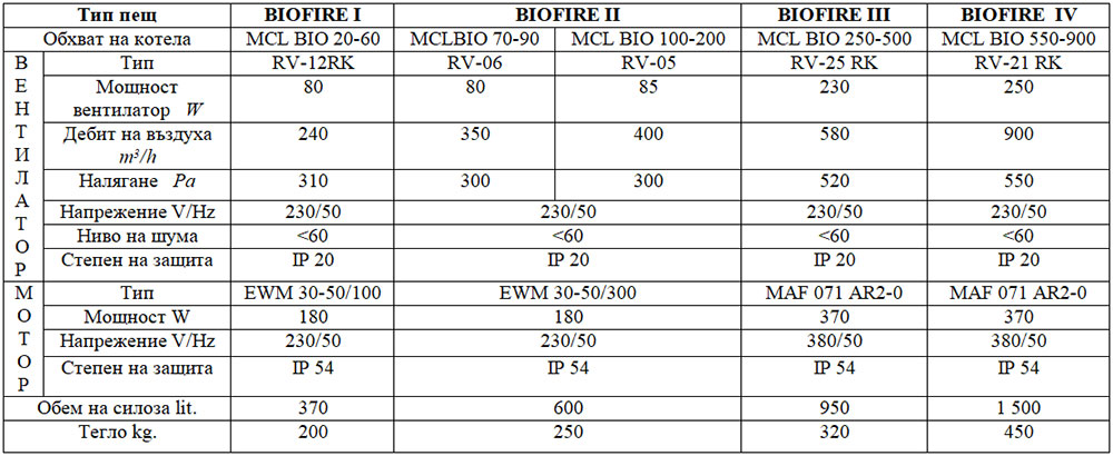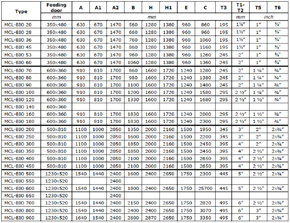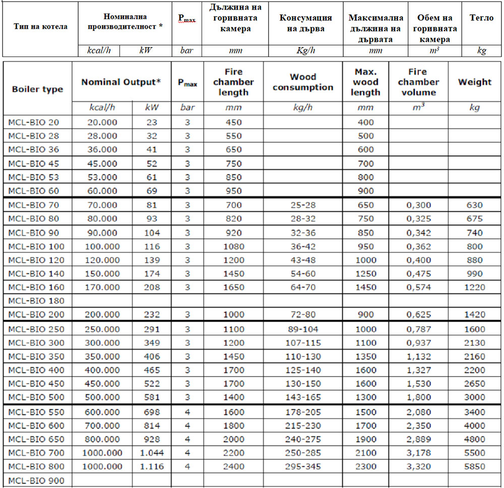 Серията котли на биомаса MCL BIO е предназначена за автоматична работа с биомаса, с размери на гранулите до 30 мм и влажност до 20%. Котелът също така може да  работи и с други твърди горива с ръчно зареждане. Възможно е използването на различни видове горива от биомаса като: пелети, агропелети, маслинени костилки, костилки от плодове, зърнени храни и други.