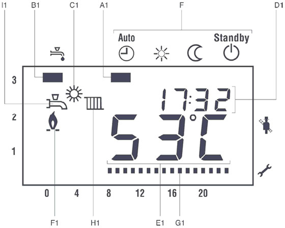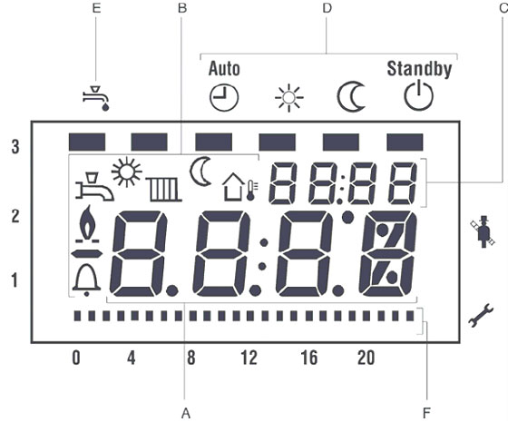 C – Малък цифров дисплей- показва временни стойности и код на грешката, дава информация за работата на горелката