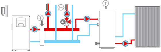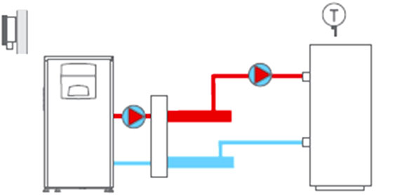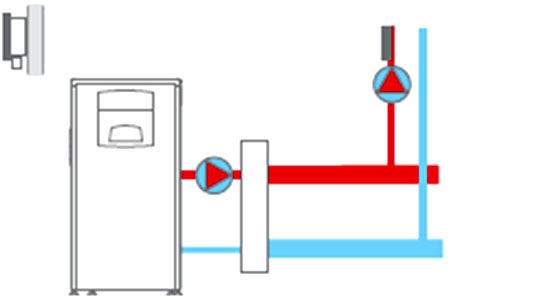 Котелът е оборудван с терморегулатор осигуряващ контрол на модулираща помпа за основния кръг.