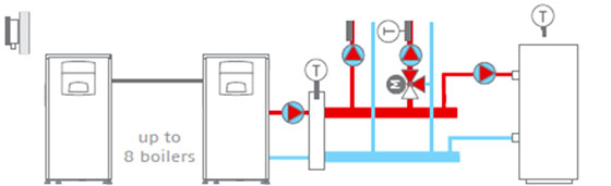 Контролерът RIELLOtech може да контролира до осем броя котли в каскада. По този начин е възможно да се изгради котел с мощност до 4,8 MW.