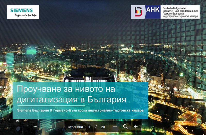 Данните са от мащабно проучване за нивото на дигитализация в България, проведено съвместно от Siemens България и Германо-Българската индустриално-търговска камара (ГБИТК). Резултатите бяха представени от главния изпълнителен директор на Siemens България д-р инж. Боряна Манолова по време на конференцията „Икономика 4.0“ по повод отбелязването на 25 години германска икономика в България.