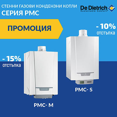Котлите PMC-M са стенни кондезни газови котли, идеално решение за отопление и производство на битова гореща вода и се предлагат в мощности от 24 до 35 kW. Те могат да работят както на природен газ, така и на пропан бутан. Благодарение на иновативния алуминиево-силициев топлообменник, топлата вода се осигурява бързо, в изобилие и с желаната температура. Допълниетелна ефективност се получава още от наличието на газова горелка с широк диапазон на модулация от 24 до 100%, която позволява оптимално адаптиране на изходящата мощност на котела спрямо потреблението на топлина. Те притежават етикет ECO-SOLUTIONS на De Dietrich, който гарантира, че можете да се възползвате от най-новото поколение мулти-енергийни системи, които са лесни за използване, с по-добри характеристики и енергийни икономии, предназначени да предоставят по-голям комфорт, без да вредят на околната среда.