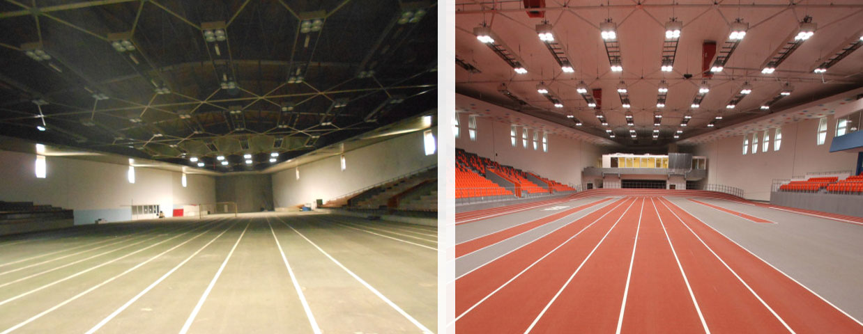 Залата построена през далечната 1968 година и е с мултифункционално предназначение, освен тренировъчна зала и зала за състезания по лека атлетика, тя е също и добра арена за зимни спортове, художествена гимнастика, танци, бойни изкуства, баскетбол, тенис, както и различни видове семинари, конференции и търговски изложения, както и концерти и други културни дейности. През 1977 година зала Фестивална беше домакин на лятната универсиада, а в днешно време е единствената функционираща зала за провеждане на състезания по лека атлетика.