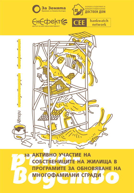 Какво представлява процесът на възлагане на обществените поръчки? Какво е най-важното при строителството, което трябва да проследим, за да се гарантира качествената работа? Какво се прави със строителните отпадъци? Какво се подценява в проектите за обновяване на сгради и подобряване на енергийните им характеристики? Какви идеи можем да дадем за една по-добра програма вбъдеще? Всичко това разказваме с кратката книжка “Ръководство за активно участие на собствениците на жилища в програмите за обновяване на многофамилни сгради”. Въпреки че сега действащата програма е една основна, сме си позволили множествено число в заглавието, защото отправяме поглед към продължението на програмата и към възможните пътища по които може да продължи жилищната политика в страната.
