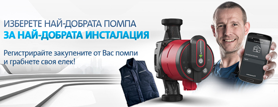 Регистрирайте закупените от Вас 6 помпи GRUNDFOS ALPHA3/COMFORT/ALPHA2/ALPHA2 L от 01.08.2016. до 31.12.2016 г. и вземете своя Grundfos елек!