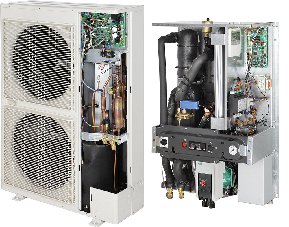 Предлаганите сплит термопомпи Mirai Split функционират ефективно и надеждно в интегрирани хибридни системи в съчетание с газов кондензен или пелетен отоплителен котел за осигуряване на отопление, охлаждане и подготовка на битова гореща вода.