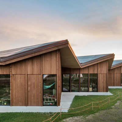 Това основно училище с детска градина в Швейцария не само изглежда добре. Сградата в Порт, проектирана от архитектурната фирма Skop, базирана в Цюрих, дава на общността излишъка от произведената от нея енергия. Разположената в жилищен квартал позитивно енергийна сграда разполага с масив от над 1100 слънчеви панела на покрива, които изцяло покриват енергийните нужди на училището и осигуряват ток за 50 съседни домакинства. Училището е и визуално свързано със съседите си със своя характерен зигзагообразен покрив, който препраща към островърхите покриви на местните къщи.
