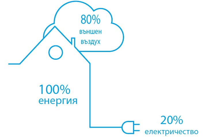 Термопомпите извличат латентна топлина от външния въздух, дори в студено време. Те използват компресор с електрическо задвижване и са изключително ефективни при отопление на апартамент или къща. С климатик на Daikin, 80% от енергията, използвана за отопление на дома, идва от външния въздух, който е безплатен и безкрайно възобновяем ресурс!